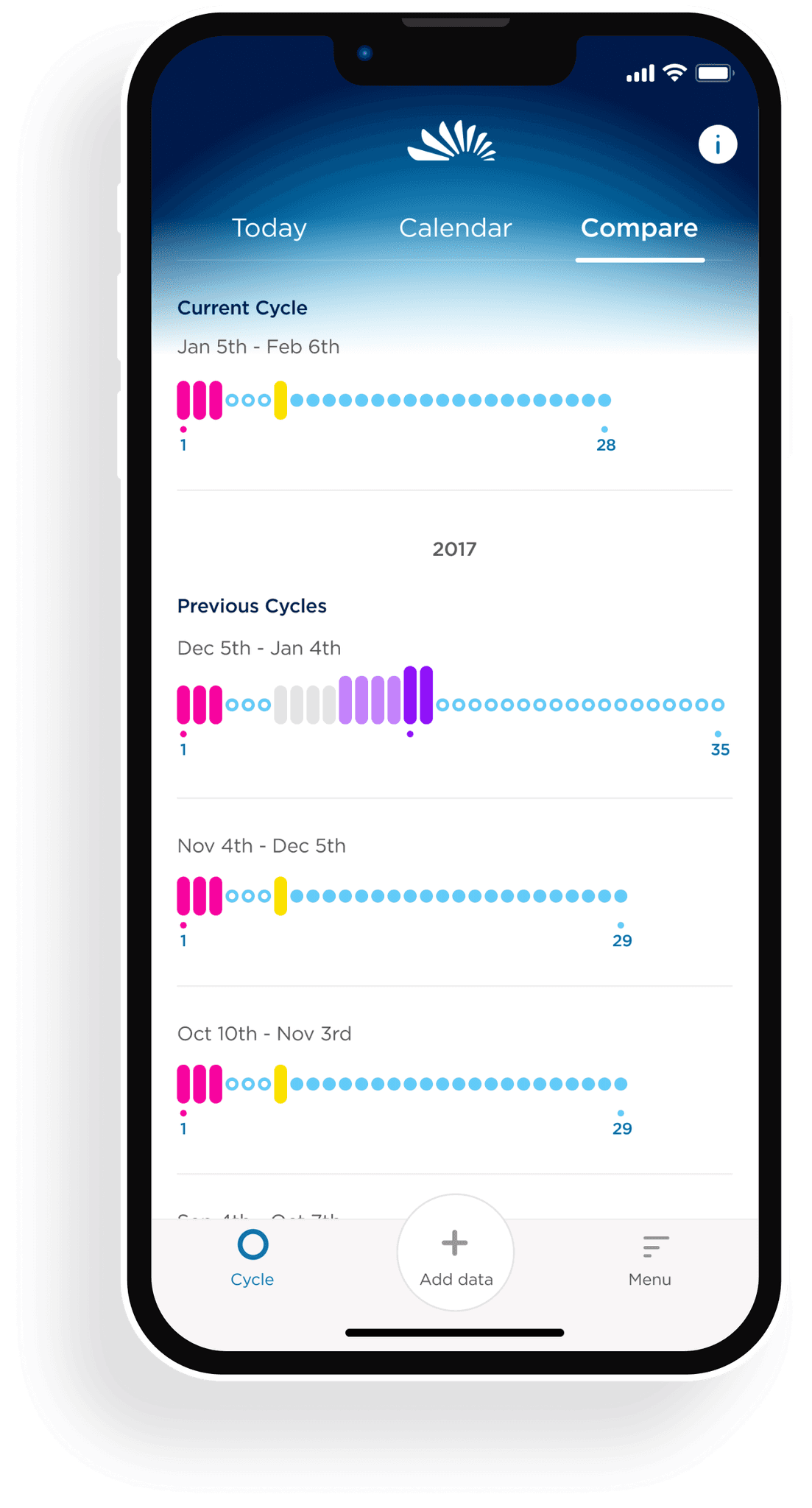 A mobile app with personalised fertility tracking, cycle comparisons, and smart reminders